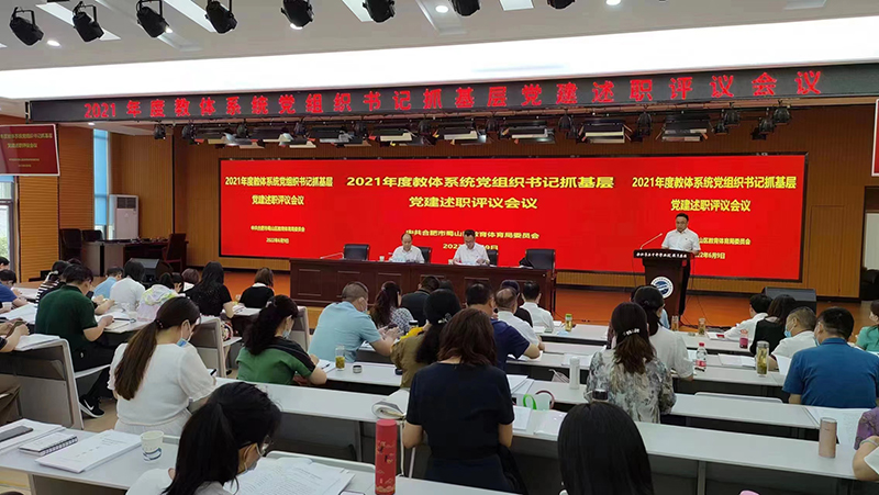 2022年6月9日,在合肥市五十中學西校合作化路校區召開了蜀山區2021年度教體系統黨組織書記抓基層黨建述職評議會。區委領導、區委組織部有關同志到會指導。區教體局領導班子成員,局屬中小學幼兒園黨組織負責人,社會組織黨組織負責人,6名熟悉了解基層黨建的“兩代表一委員”、基層黨員干部和群眾代表,共88人參加會議。新華公學黨支部書記、總校長秦新春等10個基層黨組織書記口頭述職,其他書記書面述職。會議由蜀山區教體局黨委書記、局長武斌主持。