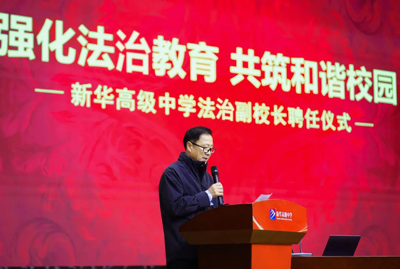徐邦民校長就學校法治教育工作做出指導,要求全體同學,要認真學好、用好法律知識,切實增強自身法治觀念,將法治的思想貫穿學習、生活的始終,做一名知法、守法的新華學子,做一名懂法、普法的追光少年。