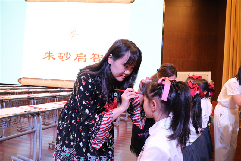 額間點(diǎn)紅痣,心中有智慧。將美好祝愿凝聚在這朱砂的中國紅上,相信同學(xué)們一定會(huì)成為至善博學(xué)的人!