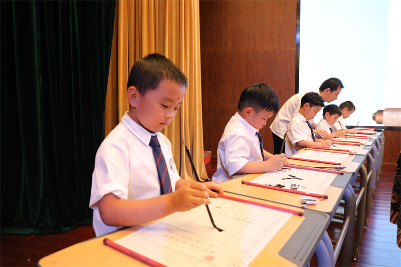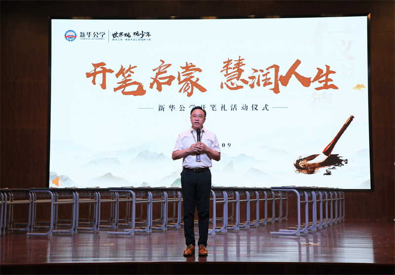 “開筆禮”是古代讀書人人生四大禮之一,被稱為人生“第一禮”,俗稱“破蒙”,對(duì)每個(gè)讀書人來說都有著重大的意義,是步入知識(shí)殿堂、走向成才的起點(diǎn)。9月28日下午,在新華公學(xué)報(bào)告廳舉行了莊嚴(yán)而隆重的“開筆禮”活動(dòng),一年級(jí)學(xué)生在家長(zhǎng)與老師的見證下“開筆啟智”。新華公學(xué)總校長(zhǎng)秦新春為此次開筆禮致辭,他期待同學(xué)們?cè)谥袊鴤鹘y(tǒng)文化浸潤(rùn)中,努力成為一名文明有禮、感恩孝順、積極進(jìn)取的終身學(xué)習(xí)者。