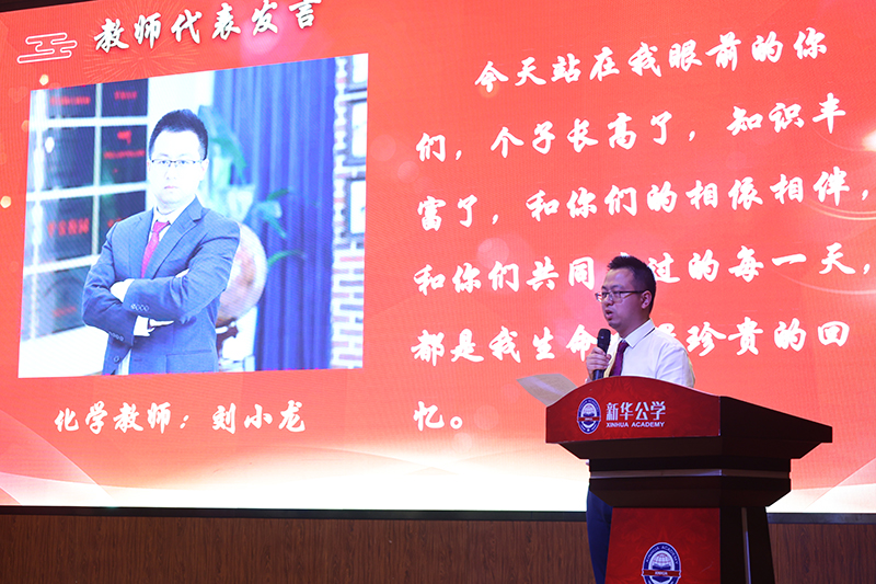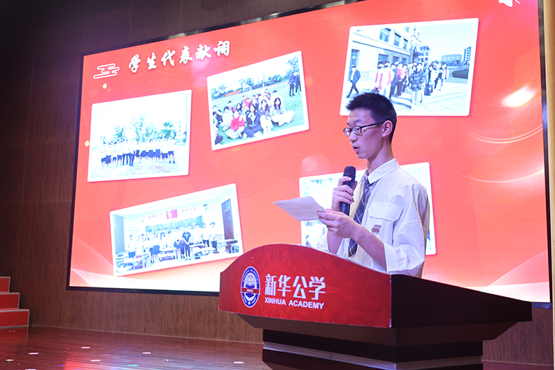 “感謝新華公學。我的母校您不但給了我們優美的校園環境,過硬的教學設施和優秀的師資隊伍,還教會了我們做人的基本準則。我們從三年前那一個個稚氣的孩童,成為了今天蓬勃向上的青年,新華公學的精神已經成為我們人生的一部分,是我們遠航的永恒動力”