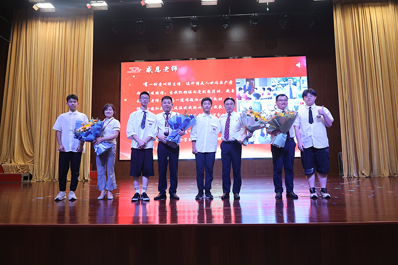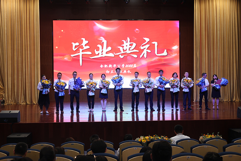 終章散場,學生依次上臺為敬愛的老師們送上鮮花,全體初三老師獻唱《放心去飛》。“放心去飛,勇敢地揮別,這一次說好了不掉眼淚”,我們緊緊相擁,我們微笑話別,祝福彼此,愿少年此去前程似錦,歸來功成名遂!