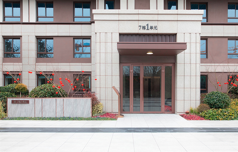 通過細(xì)節(jié)的營造傳遞舒心溫暖,單元入戶處,為解決室內(nèi)外高差采用人性化無感緩坡入戶設(shè)計(jì),既保障室外返水不易到室內(nèi),也便于推著嬰兒車、行李箱的業(yè)主安全出入。
