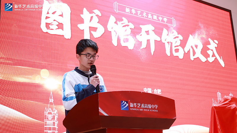 學(xué)生代表胡旭同學(xué)發(fā)言。他說,圖書館給了我們一個(gè)追求真知、重塑自我的平臺(tái),作為一名新華學(xué)子,要銘記“書山有路勤為徑,學(xué)海無涯苦作舟。” 希望全體同學(xué)以閱讀的名義,遇見更好的自己。同時(shí)呼吁大家愛護(hù)圖書館的每一方角落,遵守圖書館的規(guī)章制度,讓書香的氣息飄逸在校園的每一方土地!