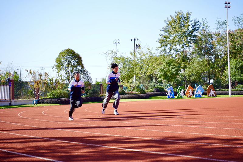 橙光流淌在朝氣蓬勃的操場上